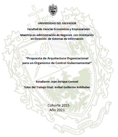 Han transcurridos más de cinco años que finalicé la cursada del MBA. No han sido pocos los imponderables que tuve que sortear para poder culminar el presente trabajo. Sin ninguna otra intención que su mención, estos se iniciaron con la impugnación del primer tutor propuesto, demoras en la búsqueda y asignación de reemplazantes, cambios de las autoridades y docentes del posgrado y una actualización en el reglamento en el Trabajo Final Integrador. Debo reconocer que el tomar conocimiento de contar con una fecha límite para la presentación fue la “gota de agua” que faltaba. Muchas Gracias a Silvana, mi compañera de la vida por su apoyo y compresión en todo lo que emprendo. A mi hija Agustina, por no haberle dedicado todo el tiempo merecido de su infancia por motivos laborales y de estudio. Probablemente la vida me otorgue una segunda oportunidad de revertirlo. No la dejaré pasar. A mis Padres por la oportunidad y empuje inicial. A Pablo, Pato y Rami, mi pequeña gran familia. A mis compañeros del Tribunal de Cuentas de la Provincia de Buenos Aires, especialmente a Gonzalo Flores, Gaston Barone, Hernán Vicente y German Murdolo que han contribuido con sus experiencias y pareceres en todo lo consultado. A la Secretaría de Modernización y Fortalecimiento Institucional por haber articulado la ayuda económica para acceder al posgrado. A Sebastián Piana e Ignacio Urteaga, tutores fallidos por sus primeras contribuciones. A Aníbal Kohlhuber por aceptar el desafío, resultando la tercera la vencida. A Violeta Rizzo y Julieta Goya por su revisión aguda del formato final.