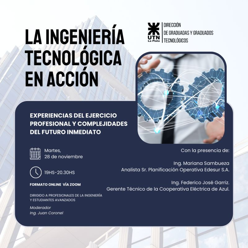 El pasado martes 28 de noviembre se realizó la última charla planificada para el año 2023 del ciclo “La Ingeniería Tecnológica en Acción». En esta oportunidad ambos invitados provienen de Ingeniería Eléctrica: Mariana Lujan Sambueza es Analista Sr. de Planificación Operativa de Edesur S.A. y Federico Garriz es Gerente y Representante Técnico de la Cooperativa Eléctrica de Azul en la Provincia de Buenos Aires.